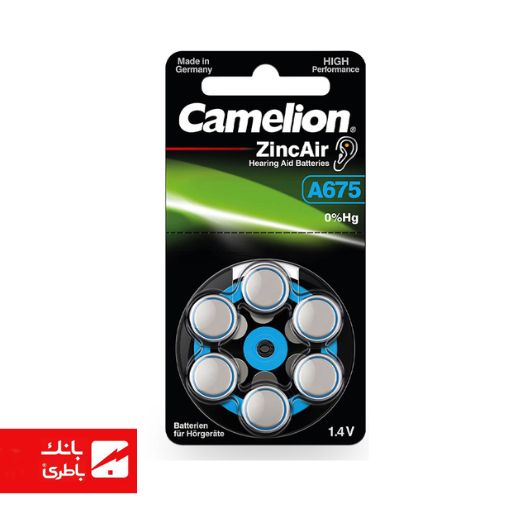 باتری Camelion A675 از نوع زینک-ایر (Zinc Air) است. این تکنولوژی با استفاده از اکسیژن هوا فعال میشود و انرژی لازم برای سمعک را فراهم میکند. این باتری با ولتاژ ۱٫۴ تا ۱٫۴۵ ولت و طراحی خاص خود برای سمعکهای سایز 675 ساخته شده است. رنگ آبی روی بستهبندی این مدل، نشاندهنده استاندارد جهانی سایز A675 میباشد.